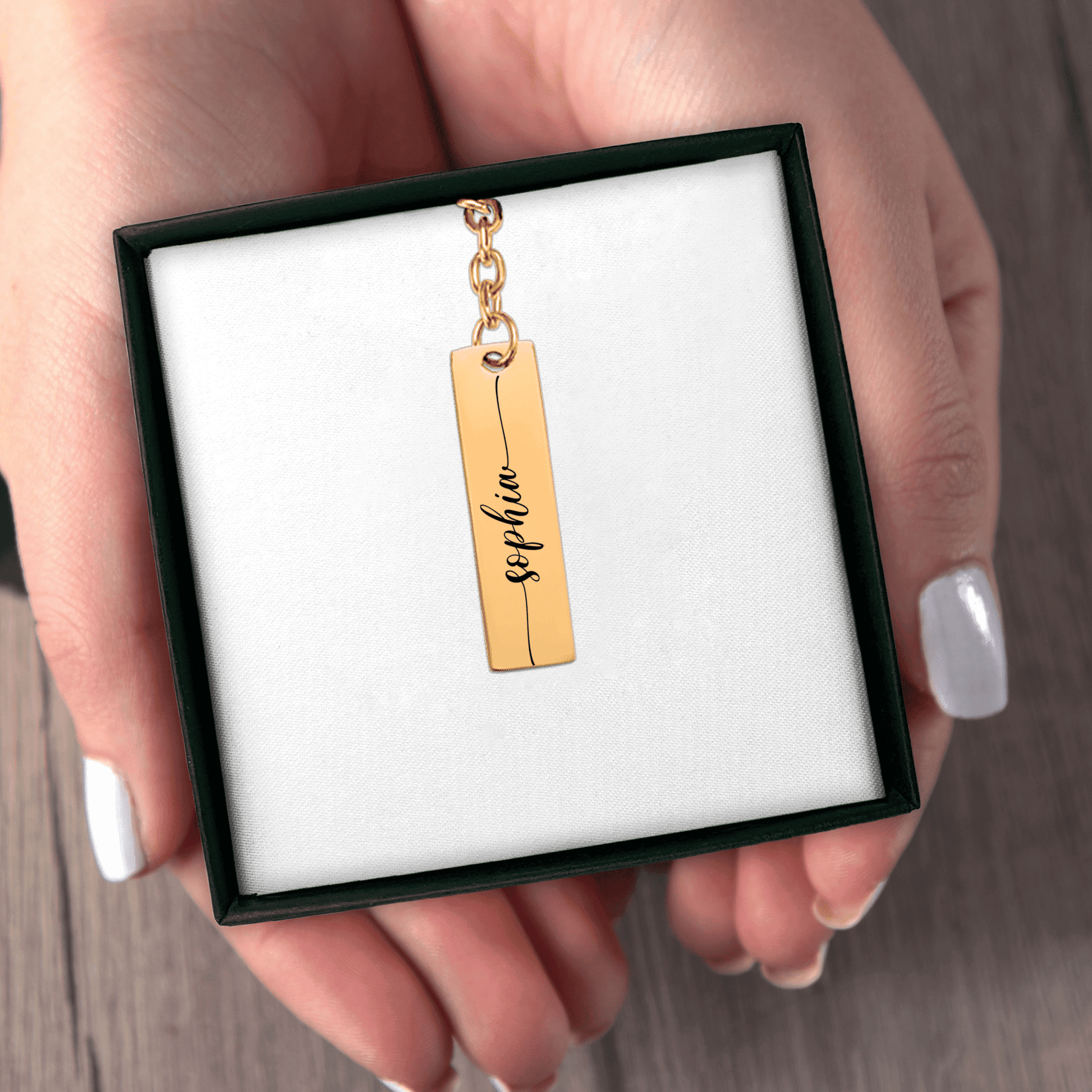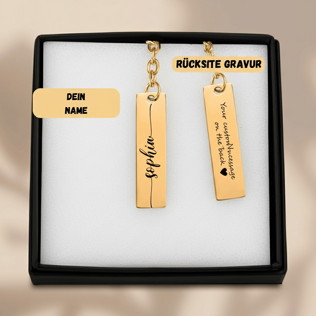Dieser hochwertige, personalisierbare Schlüsselanhänger lässt sich mit deinem Namen oder dem einer geliebten Person gravieren. Für eine noch persönlichere Note kannst du die Rückseite mit einer eigenen Botschaft versehen.