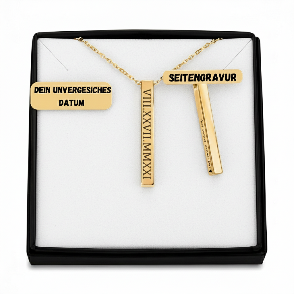 Verewige einen besonderen Moment in deinem Leben mit unserer personalisierten Halskette. Dieses elegante Schmuckstück macht aus einem einfachen Datum ein einzigartiges Erinnerungsstück, das für immer bleibt.