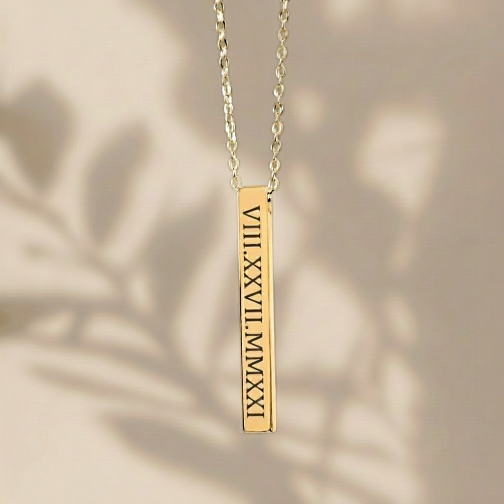 Personalisierte Halskette mit römischen Zahlen (Senkrecht)